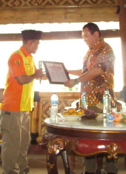 Ketua Front Nasional Berkarya Tri Joko Susilo SH (pertama dari kiri) menyerahkan Nota Pendirian Front Nasional Berkarya kepada Ketum DPP Partai Berkarya Hutomo Mandala Putra (HMP) atau yang akrab disapa Tommy Soeharto di Saung Berkarya, Hambalang, Bogor, Jawa Barat (Jabar), belum lama ini. (Foto : Murgap Harahap)