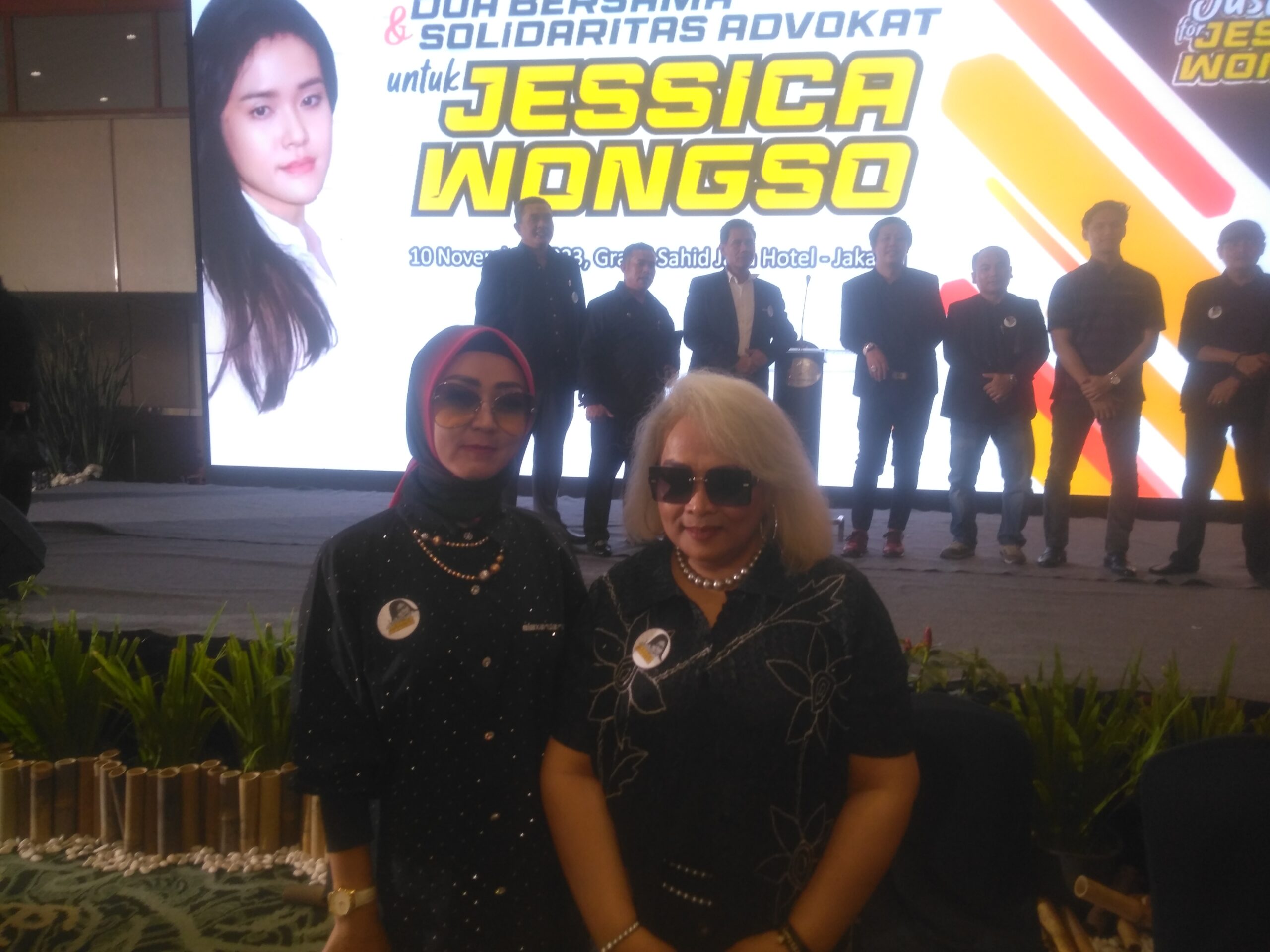 Ketua Bidang Perempuan dan Anak DPP HAPI Dr (HC) Ir Rismauli Sihotang SH MH (pertama dari kanan) foto bersama Susilawati SH MH MKn dari KAI Jabar saat acara Advokat Do’a Bersama untuk Jessica Wongso di Hotel Grand Sahid, Jakarta, Jum’at (10/11/2023). (Foto : Murgap Harahap)