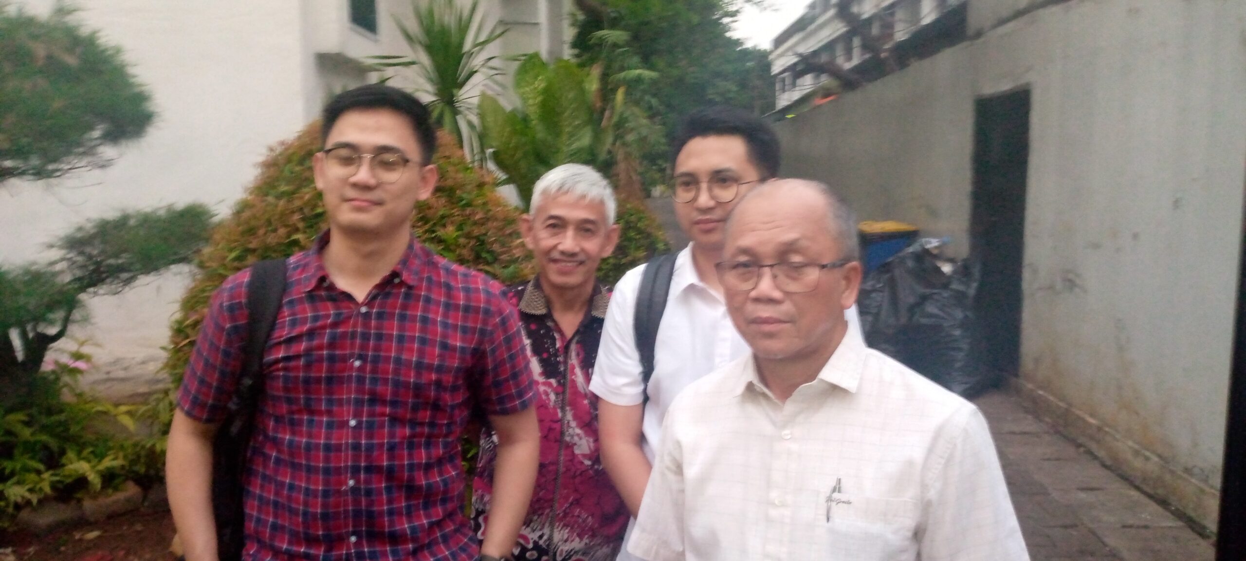 Kuasa Hukum terdakwa Dirut PT ASDP Indonesia Ferry (Persero) Ira Puspa Dewi dkk, Gunadi SH CN (pertama dari kanan depan) foto bersama anggota tim Kuasa Hukumnya Rama SH (kedua dari kiri depan) dan lainnya di lingkungan PN Jakpus, Jalan Bungur, Kemayoran, Jum’at (17/10/2025). (Foto : Murgap Harahap)
