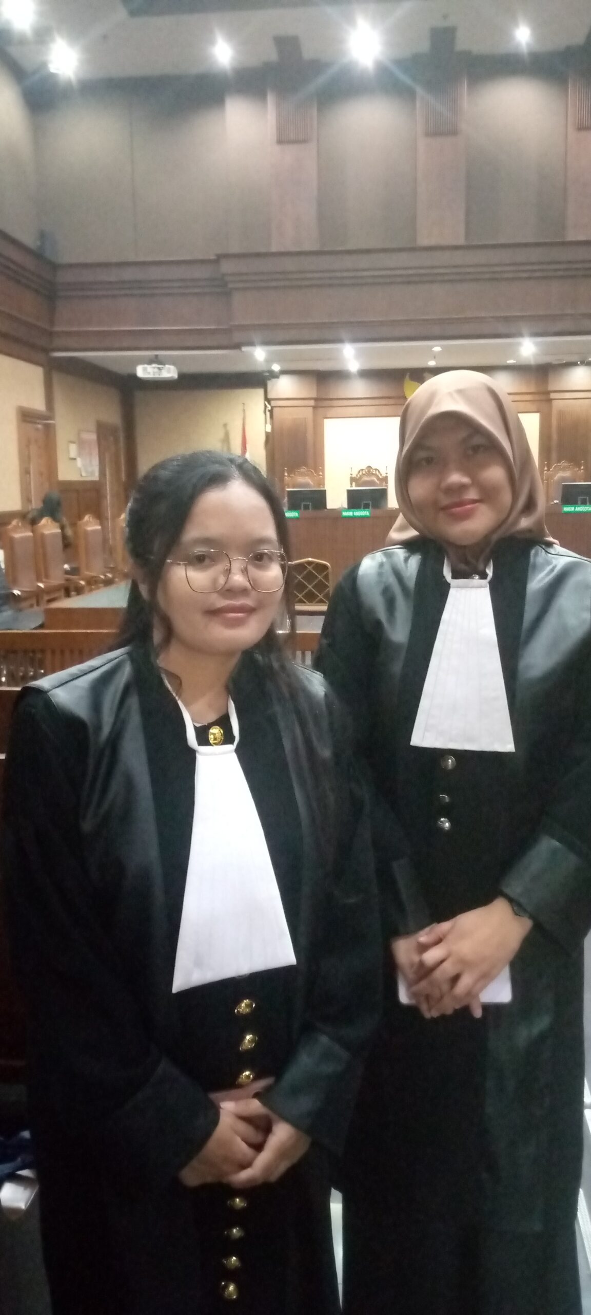 Kuasa Hukum terdakwa Mantri BRI Unit Kebon Baru, Jaksel, periode 2018 hingga 2024 Parlindungan Pasaribu, Yolanda Oktaviola SH (pertama dari kanan) foto bersama anggota tim Kuasa Hukumnya Magdalena Simamora SH di ruang Prof Dr Kusumah Atmadja SH MH, Pengadilan Tipikor pada PN Jakpus, Jalan Bungur, Kemayoran, Jum’at (21/11/2025). (Foto : Murgap Harahap)
