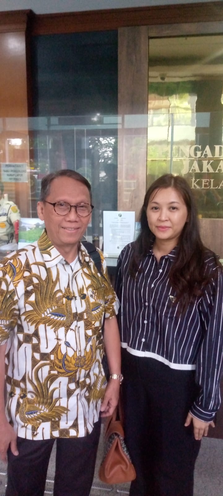 Kuasa Hukum terdakwa mantan Dirut PT Pertamina International Shipping (PIS), Yoki Firnandi, Elisabeth Tania SH MH (pertama dari kanan) foto bersama anggota tim Kuasa Hukumnya Wimboyono Senoadji SH di luar ruang Prof Dr HM Hatta Ali SH MH, Pengadilan Tipikor pada PN Jakpus, Jalan Bungur, Kemayoran, Selasa (30/12/2025). (Foto : Murgap Harahap)