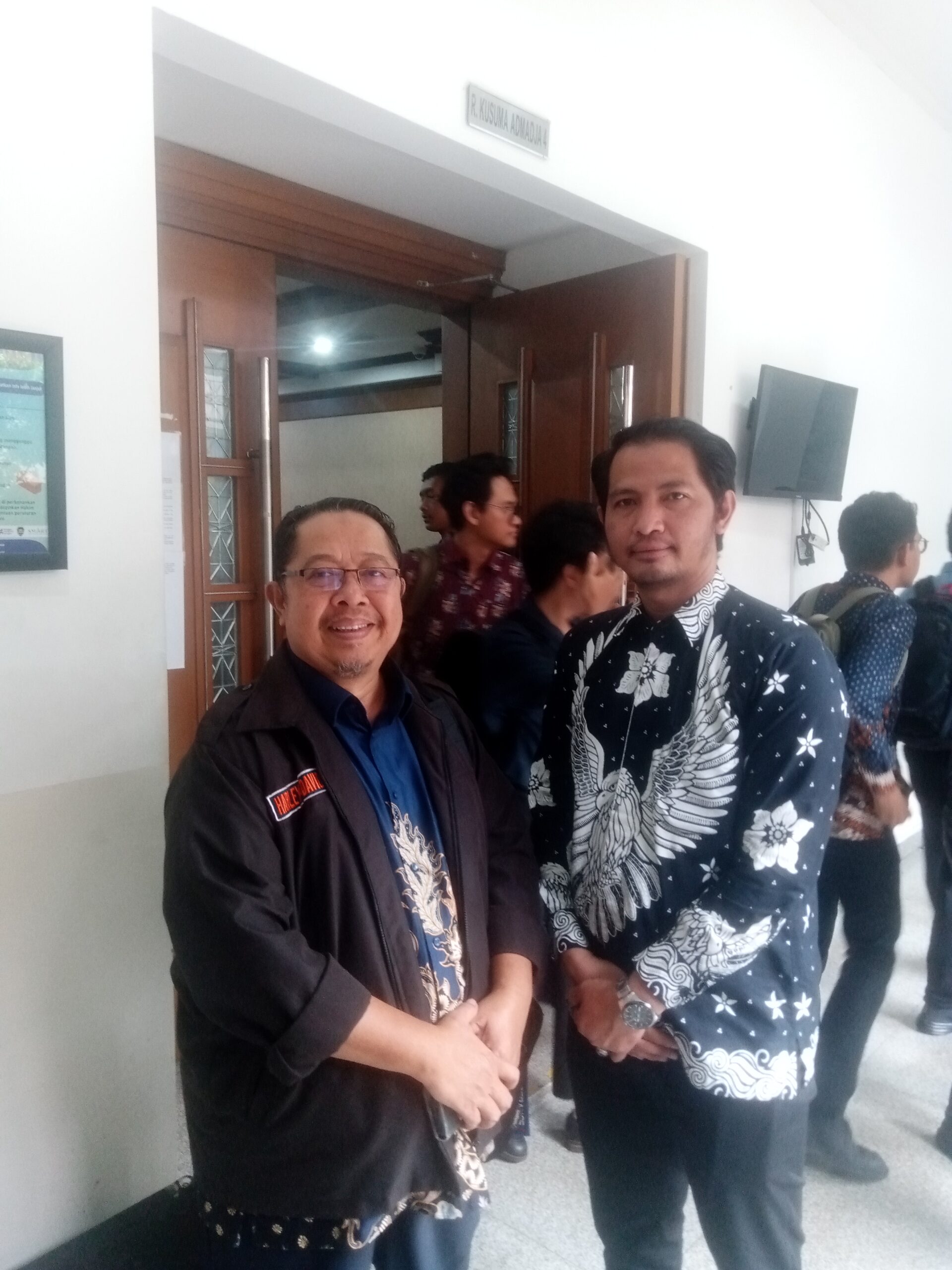 Kuasa Hukum Debitur, Misfuryadi Basrie SH foto bersama anggota tim Kuasa Hukumnya Imam Purna SH di luar ruang Kusumah Atmadja 4, Pengadilan Niaga pada PN Jakpus, Jalan Bungur, Kemayoran, Kamis (19/02/2026). (Foto : Murgap Harahap)