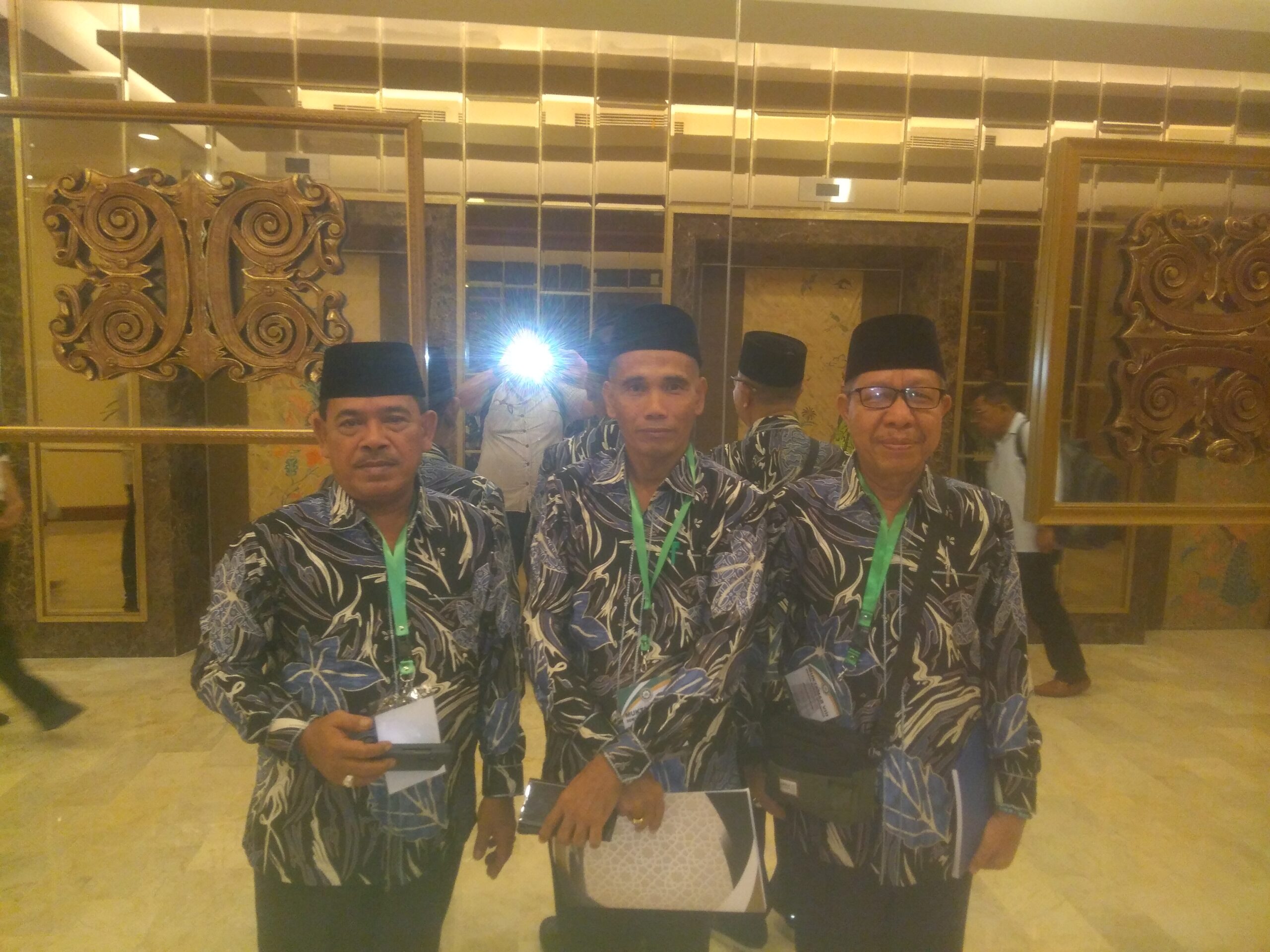 Ketua DMI Kabupaten Banyuasin periode 2023 hingga 2028 Drs H Hamdan MPdI (pertama dari kanan) foto bersama anggotanya di Hotel Sultan, Jakarta, Jum’at (01/03/2024). (Foto : Murgap Harahap)